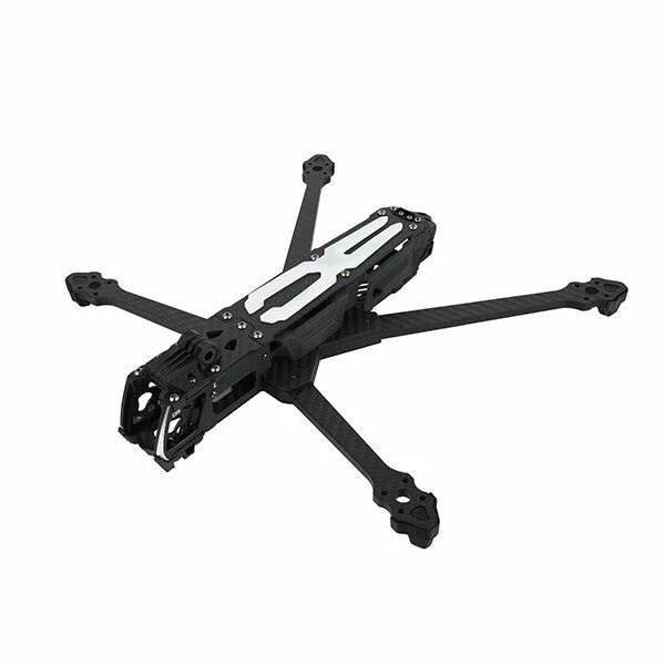 La plateforme propose un empattement de 322 mm optimisé pour des hélices jusqu’à 7,5", avec des bras en fibre de carbone épais pour une meilleure résistance aux chocs tout en maintenant une bonne réactivité de vol. Le châssis intègre des options de fixation stack standards 30,5×30,5 mm et 20×20 mm, facilitant le montage de contrôleurs de vol, ESC et autres modules. Les points de montage moteurs en 19×19 mm M3 sont compatibles avec une large gamme de motorisations brushless adaptées à un usage 6S intensif.
