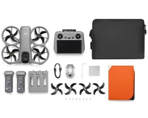 Ce pack enrichi comprend le drone DJI Avata 360, la radiocommande RC 2 avec écran integré, trois batteries intelligentes, une station de recharge bidirectionnelle, un sac à bandoulière dédié, une piste de décollage, des protections de nacelle, deux paires d'hélices de rechange, un chiffon de nettoyage et un tournevis.