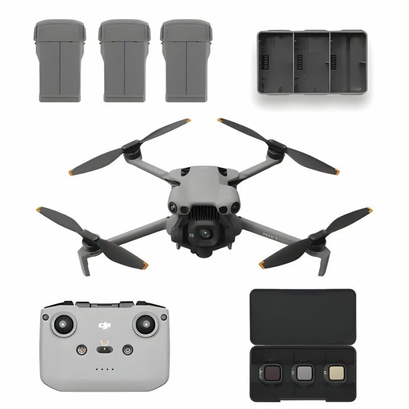 Ce Fly More Combo fait surtout la différence sur l’endurance : il inclut 3 batteries (jusqu’à 36 minutes chacune en conditions annoncées) et une station de recharge bidirectionnelle pour mieux organiser la rotation des accus. Le jeu de filtres ND (ND8/32/128) aide à garder une vitesse d’obturation cohérente en plein soleil, afin d’obtenir un rendu plus naturel sur les mouvements.