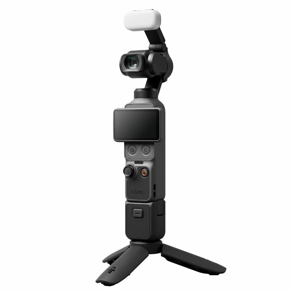 Il ajoute à la caméra de base un émetteur audio DJI Mic 3, une lumière d'appoint, un objectif grand-angle, un mini trépied, une poignée d'extension avec filetage 1/4" et des pochettes de transport pour protéger votre équipement.