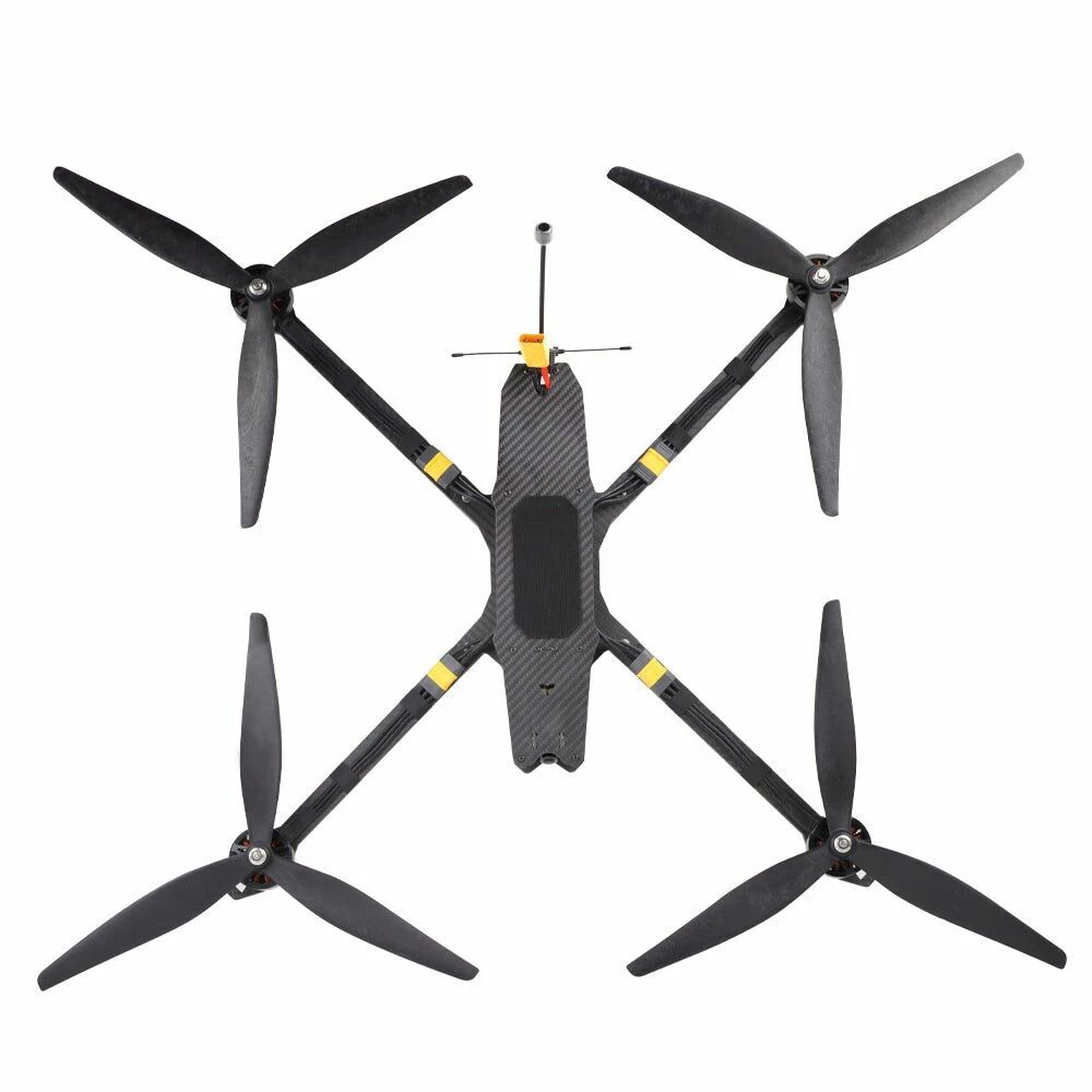 Côté transmission, l'émetteur vidéo de 2,5 W couplé au récepteur ELRS 915 MHz garantit une portée de signal étendue et une pénétration optimale, même dans les environnements boisés. Pesant 2,1 kg, ce drone est compatible avec des batteries 8S 20000 mAh pour maximiser votre temps de vol. Les connecteurs MR60 facilitent l'installation et la maintenance, vous permettant de repartir rapidement après chaque session.