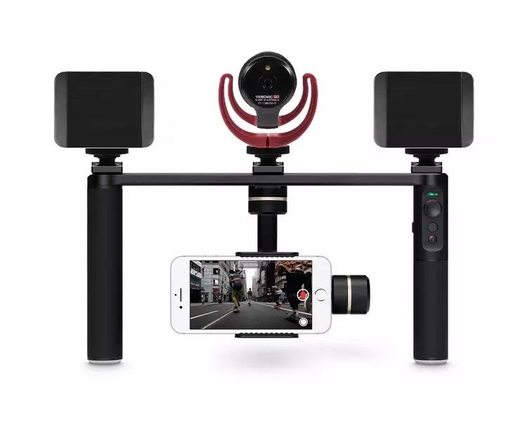 Le Feiyu SPG Plus est le stabilisateur idéal pour ce type d'utilisation avec ses deux poignées permettant une meilleure prise en main. Il dispose également d'une fixation cold shoe sur le milieu de la poignée et de 2 pas de vis 1/4" pour venir y fixer de nombreux accessoires.