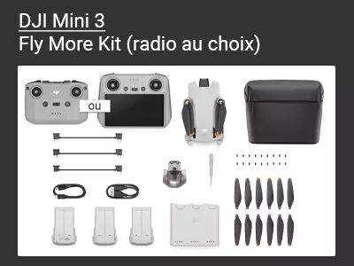 Il s’agit du pack ultime pour le DJI Mini 3. En effet, ici, en plus des accessoires supplémentaires, le DJI Mini 3 est accompagné de la radiocommande DJI RC. De ce fait, ce pack comblera les personnes qui souhaitent bénéficier de la meilleure expérience possible avec le DJI Mini 3, un drone polyvalent, passe-partout et pourtant tellement puissant.