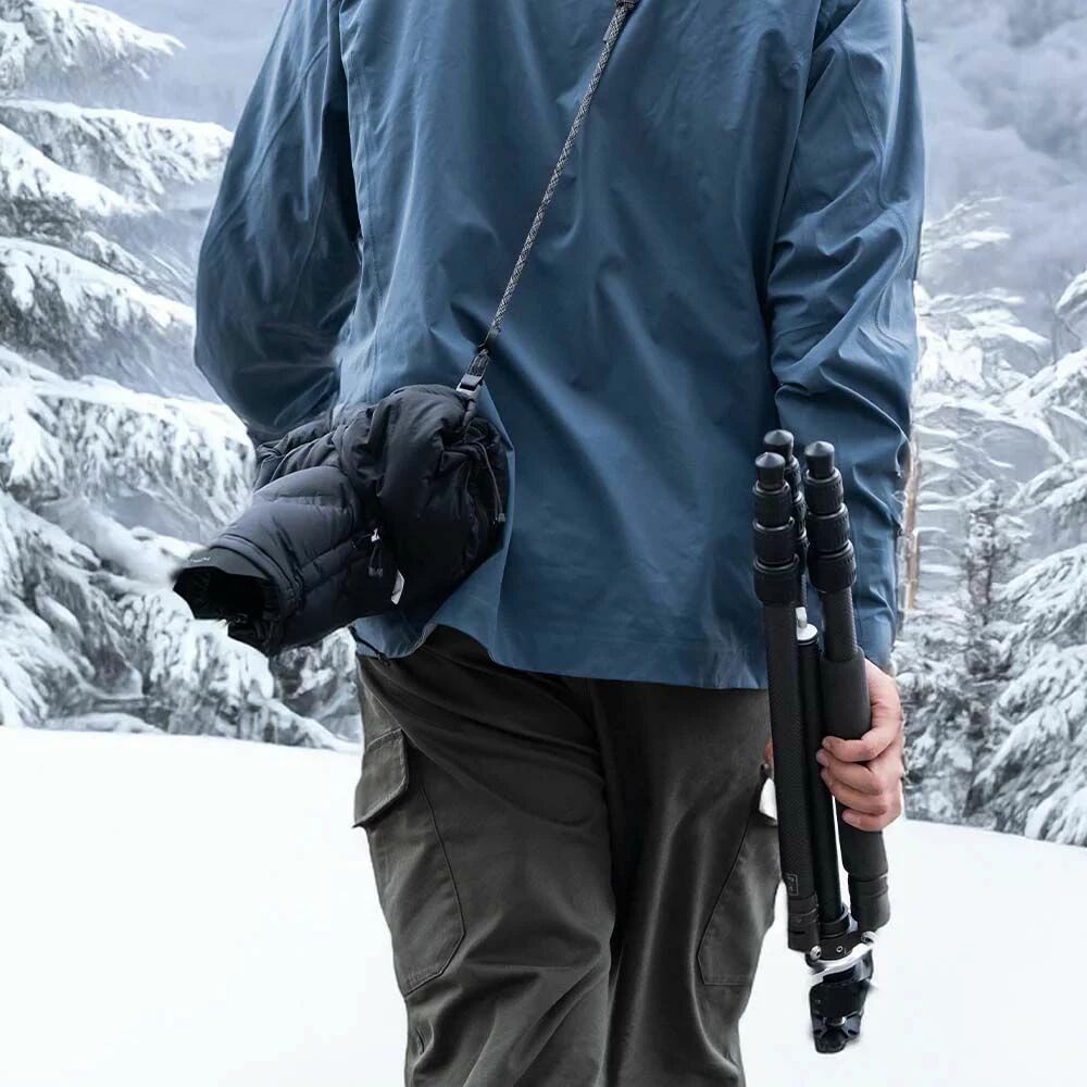 Conçue pour offrir une protection maximale contre le froid, la neige et l'humidité, cette housse hautement isolante utilise 90% de duvet d'oie pour garantir que votre matériel reste au chaud, même par temps glacé. Sa doublure en velours doux ajoute un confort supplémentaire, et son manchon ajustable s’adapte à différents objectifs, avec une version spéciale Téléphoto pour les objectifs longs de 150 à 450 mm.