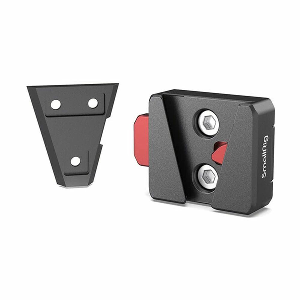 Le kit fonctionne également comme platine de remplacement sur certaines batteries V-Lock d'origine. Sa compatibilité avec l'écosystème SmallRig, notamment la charnière MD2802 pour ajuster l'angle, vous permet d'adapter votre configuration selon vos besoins de tournage.