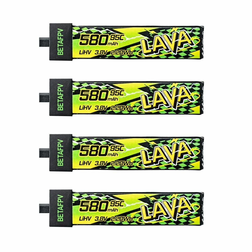 La batterie LiHV LAVA II 1S 580mAh 95C de BetaFPV est un lot de 4 batteries destiné aux drones FPV de type Tinywhoop. Elle vise un double objectif clair : fournir une réponse nerveuse pour les vols agressifs et maintenir une autonomie stable pour enchaîner des sessions plus longues. Elle s'adresse aux pilotes qui recherchent une alimentation fiable sur des micro-drones compatibles BT2.0.