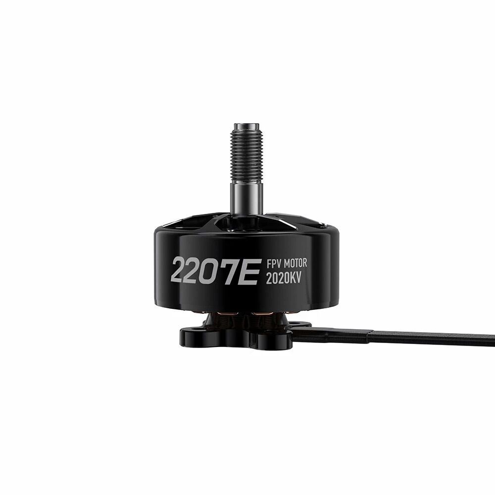 La conception en aluminium 7075 usiné CNC avec finition noire brillante intègre de larges découpes favorisant une dissipation thermique efficace. Ce design soigné contribue à une meilleure résistance aux impacts et à une longévité accrue. Le moteur est équipé d’un bobinage en cuivre mono-brin, d’aimants N52H et de roulements NMB/NSK, garantissant une réponse rapide et un contrôle fluide dans chaque manœuvre.