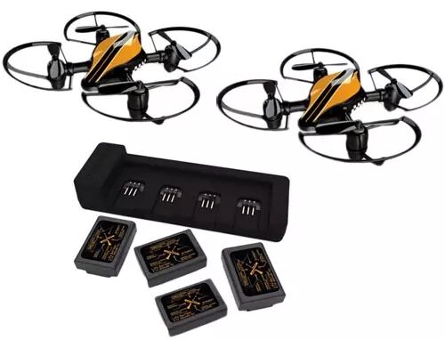 Découvrez notre pack Combat comprenant deux Drones Fighter + un chargeur 4 batteries. Destiné aux combats aériens, le Drone Fighter dispose de capteurs infrarouges et de différents modes de combat pour une expérience unique ! Rechargez plus vite vos batteries grâce au chargeur 4 batteries et engagez -vous dans un combat avec vos amis, vos proches ou votre famille.