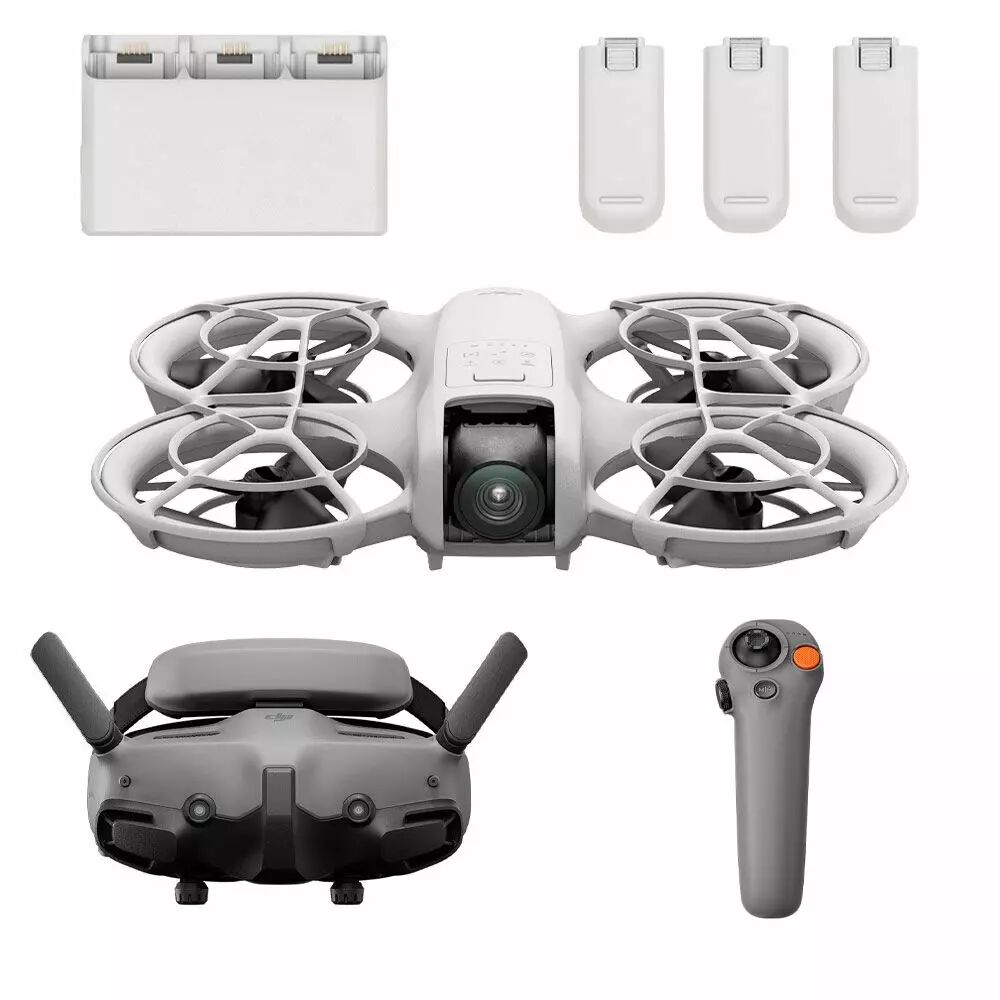 Grâce à ce bundle complet, essayez vous au FPV avec le plus petit drone DJI aux performances, pourtant, énormes. Retrouvez ainsi dans le pack le drone DJI Neo, le casque FPV DJI Goggles 3 ainsi que la radiocommande DJI RC Motion 3. Deux versions sont disponibles : la version Standard ou le Fly More Combo. Celui-ci contient 3 batteries ainsi qu’une station de charge.