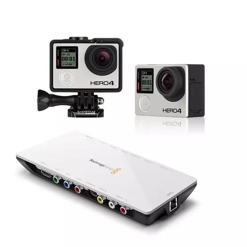 On retrouve dans ce pack, un boitier d'acquisition (Intensity Shuttle Blackmagic), une caméra Hero4 Black Edition, des fixations spécifiques pour instruments et un câble HDMI pour le raccordement.