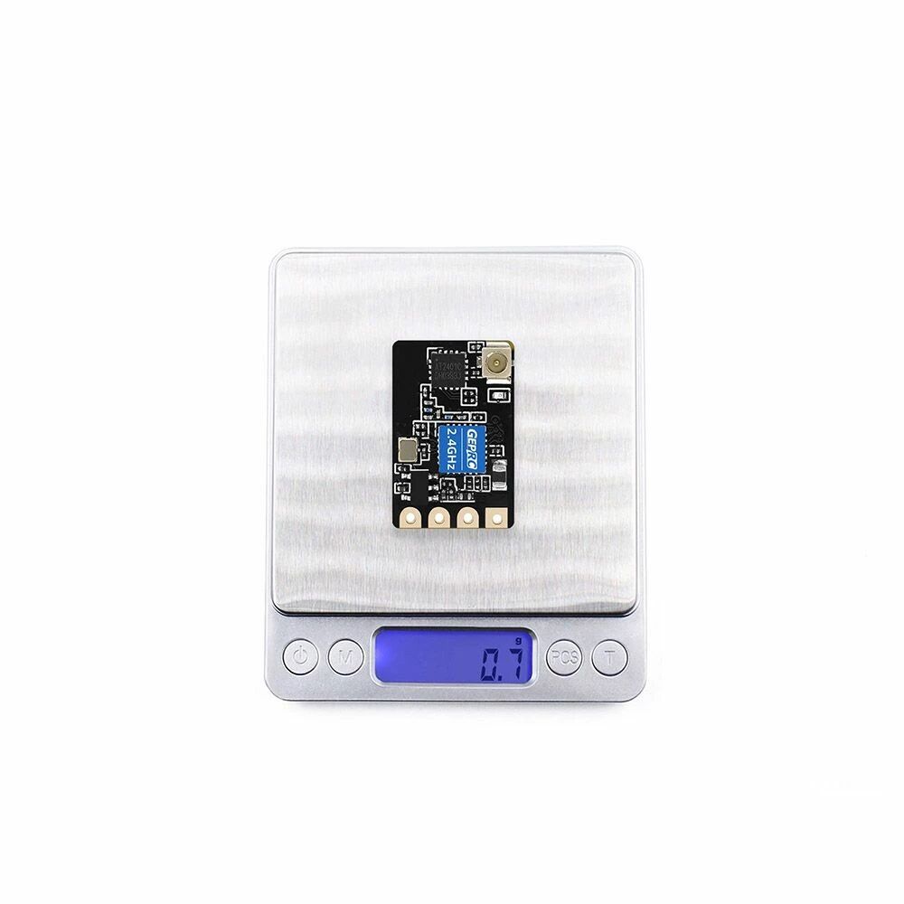 Avec son format ultra-compact de 17 x 11 mm et son poids plume de 0,7 g, il s'intègre aisément dans les configurations les plus légères. Ce modèle bénéficie d'un oscillateur à compensation de température (TCXO), garantissant une fréquence stable quelles que soient les conditions climatiques. Son module PA+LNA intégré offre une puissance de télémétrie jusqu'à 100 mW.