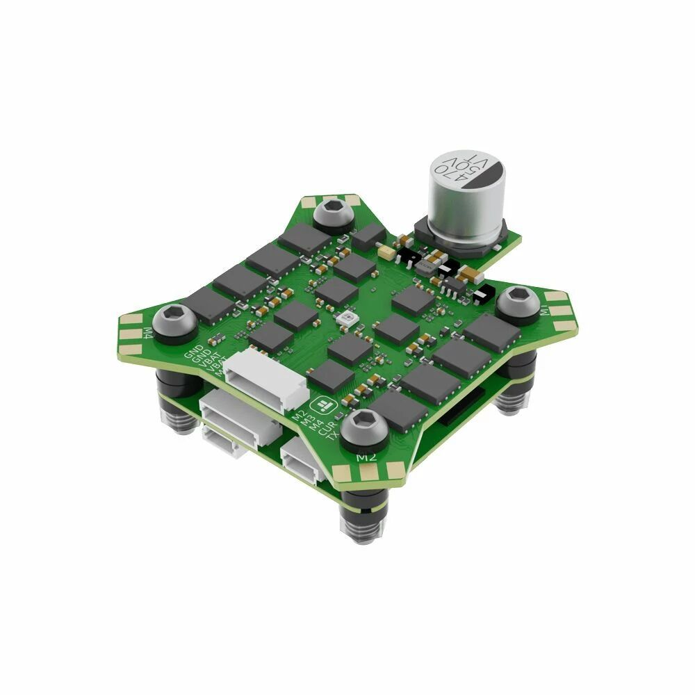 L’ESC 4-en-1 E55 de ce stack fournit une puissance constante de 55A (65A en pic) et est compatible avec des batteries 2-6S, idéal pour des drones puissants. Il prend en charge des protocoles comme DShot et MultiShot, assurant une distribution d’énergie fluide grâce à son processeur G071.