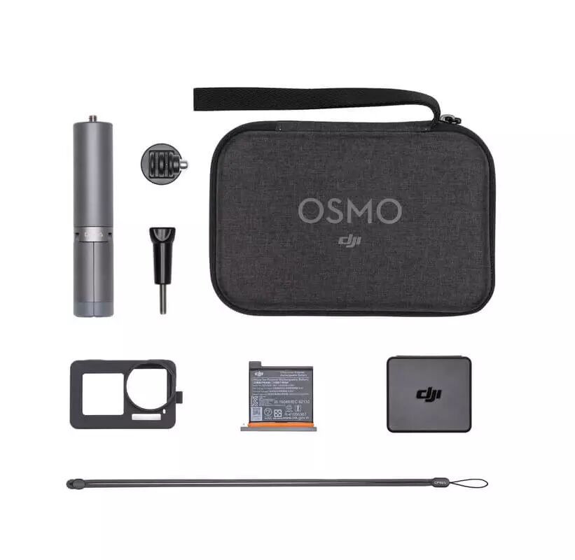 Le kit est composé d'un trépied faisant office de selfie stick, d'une protection en silicone pour votre Osmo Action, d'une dragonne pour la sécurité, de fixations et d'une batterie supplémentaire pour booster votre autonomie.