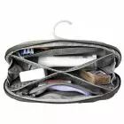 Cette trousse peut être posée à la verticale sur un comptoir ou suspendue grâce à un crochet en aluminium escamotable, offrant ainsi une grande flexibilité d'utilisation.